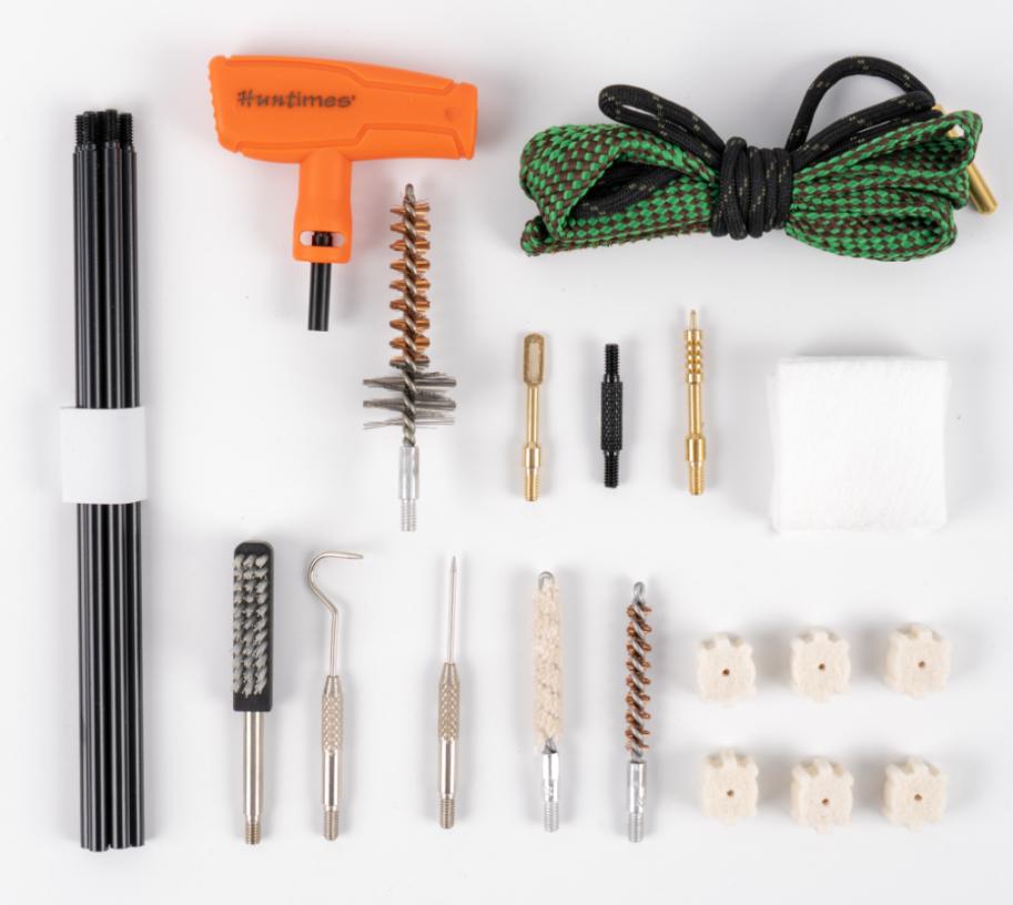 Il kit di pulizia per fucili Huntimes® è un sistema completo per mantenere la pistola pulita e sparare con precisione. Parti in rame, aste in acciaio e spazzole in bronzo fosforoso proteggono i fori. Il kit di pulizia per fucili Huntimes® è un sistema di pulizia completo che viaggia facilmente con te.